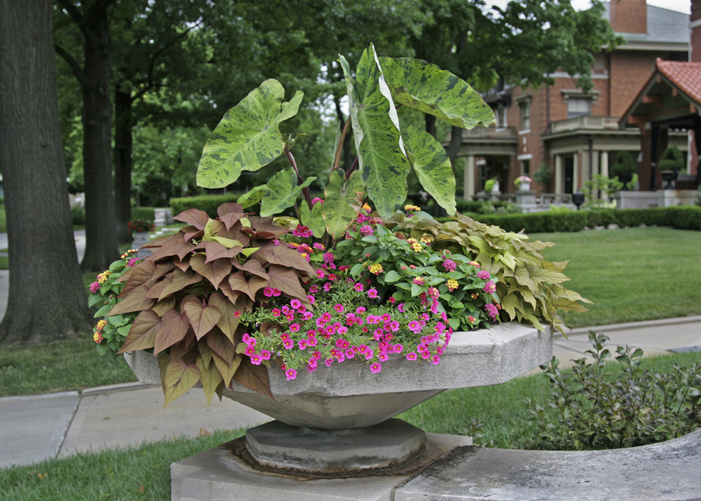 Well-designed container gardens add a pop of color wherever you want to draw the eye.